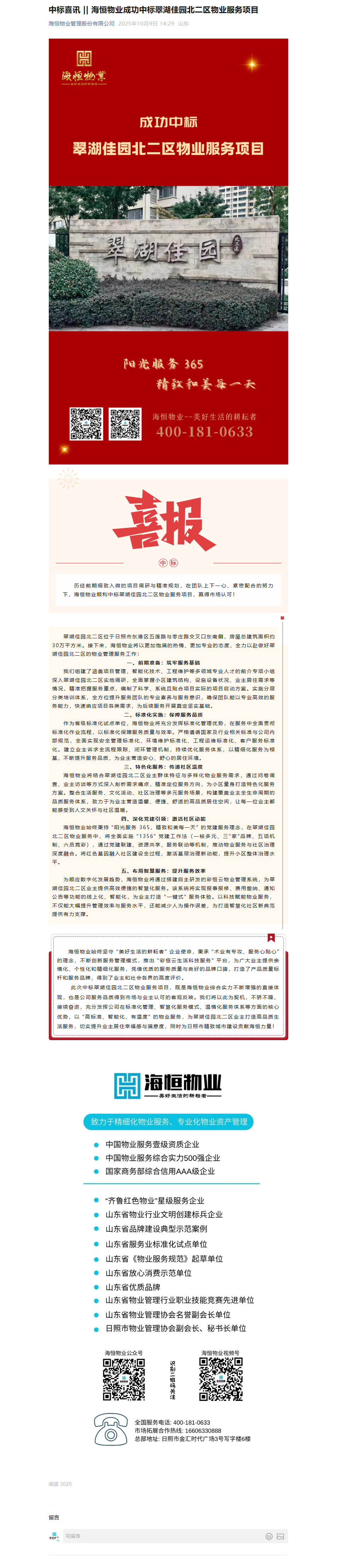 中标喜讯 || 海恒物业成功中标翠湖佳园北二区物业服务项目